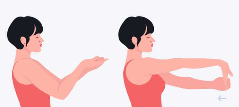 Depois, troque de braço e repita. Esse alongamento também ajuda a alongar os tendões na região do punho.