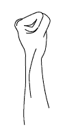 b – Feche o punho. Mantenha o seu polegar reto, e não preso embaixo dos dedos