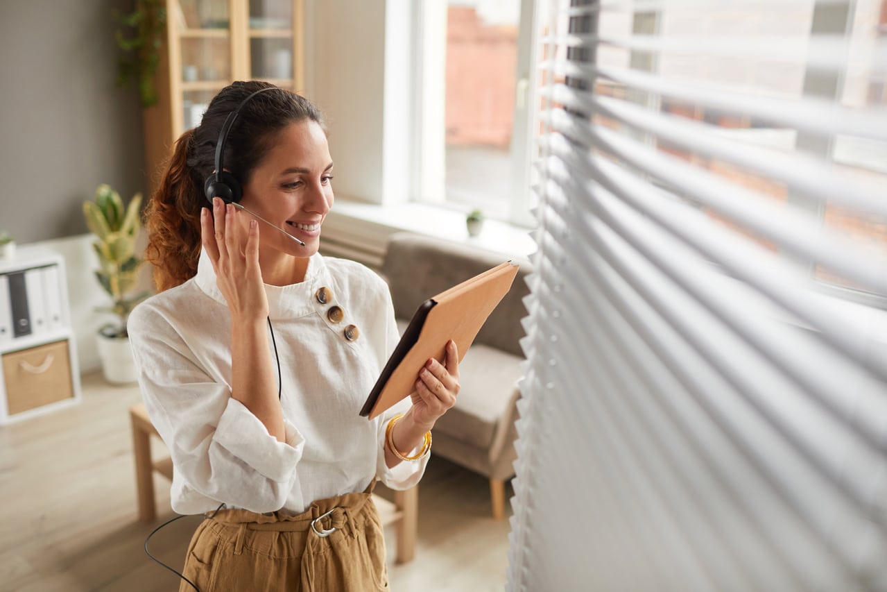 Ficar em pé durante a chamada demonstra que você tem o controle sobre o que está falando, domínio da situação e segurança sobre as informações que está transmitindo.