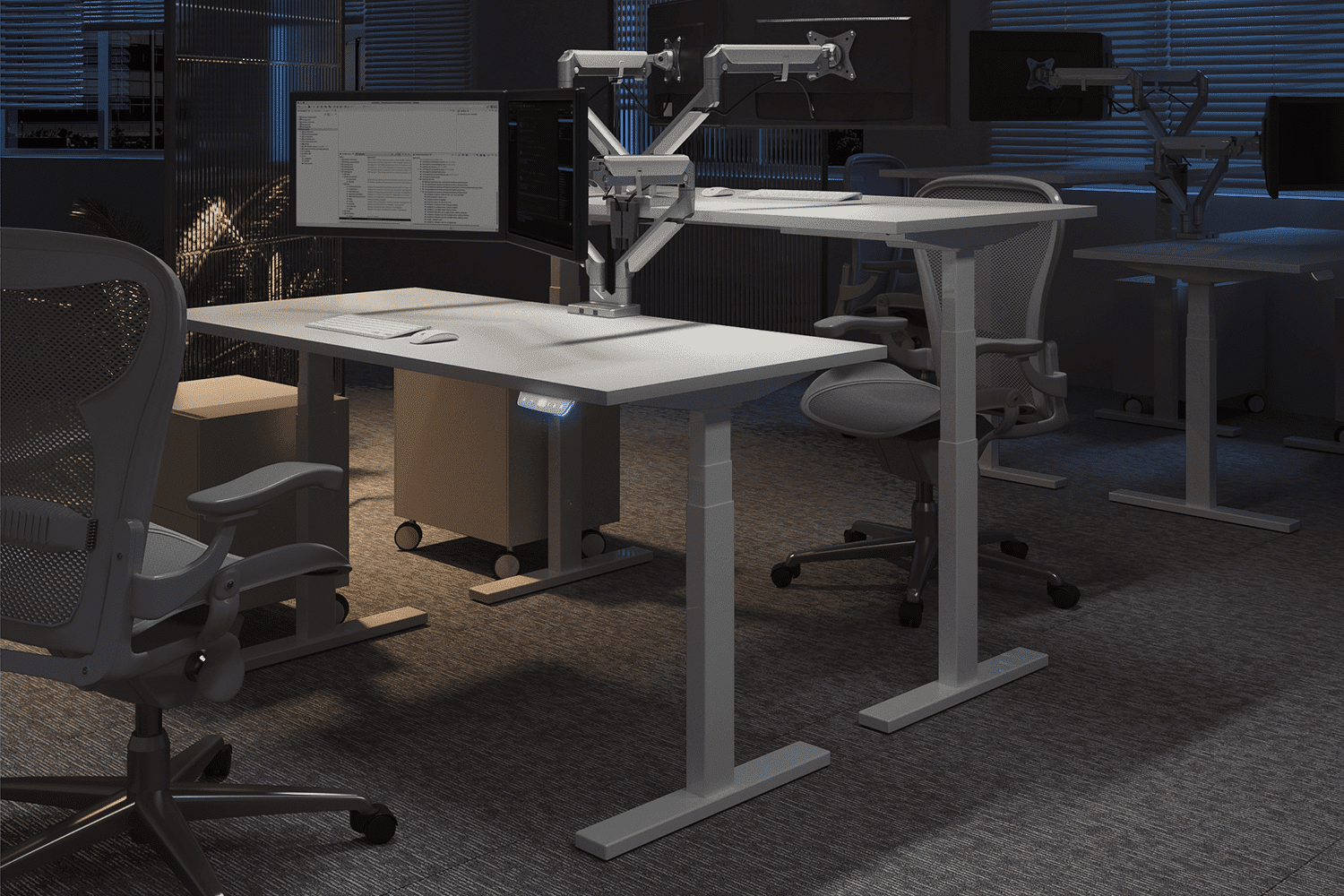 O modelo Lift da Slikdesk pode ser acionado a partir de poucos toques no painel digital. A regulagem de altura é automatizada, permitindo que a estrutura seja deslocada em 2 colunas de 3 estágios até que a posição ideal para o seu setup seja encontrada!