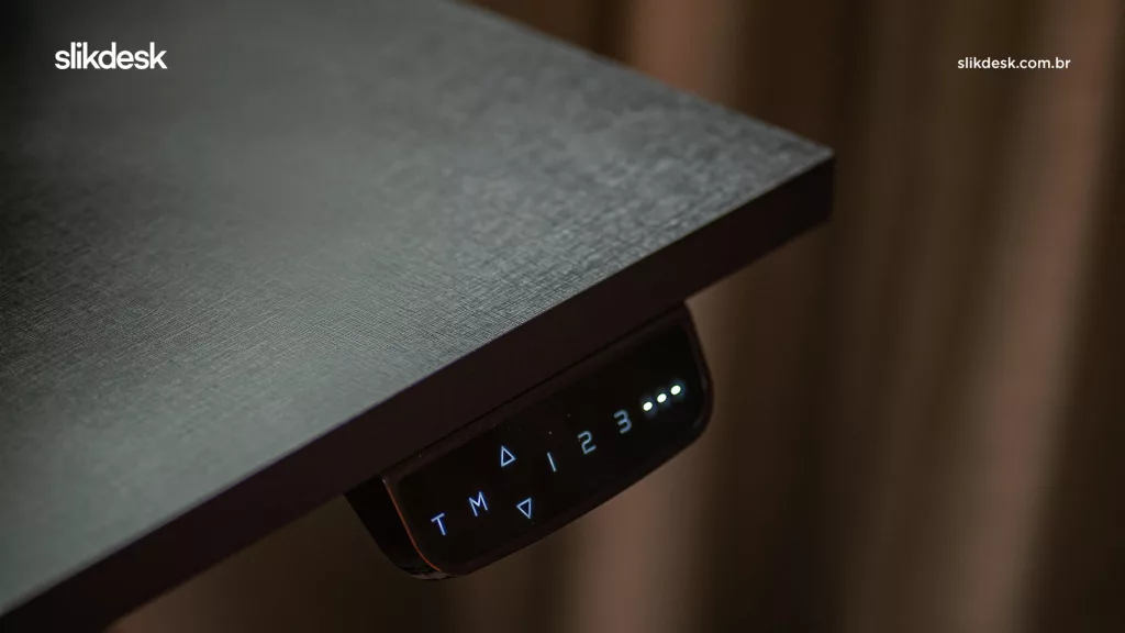 É o caso da opção “Mesa com regulagem de altura elétrica Slikdesk High” que possui: