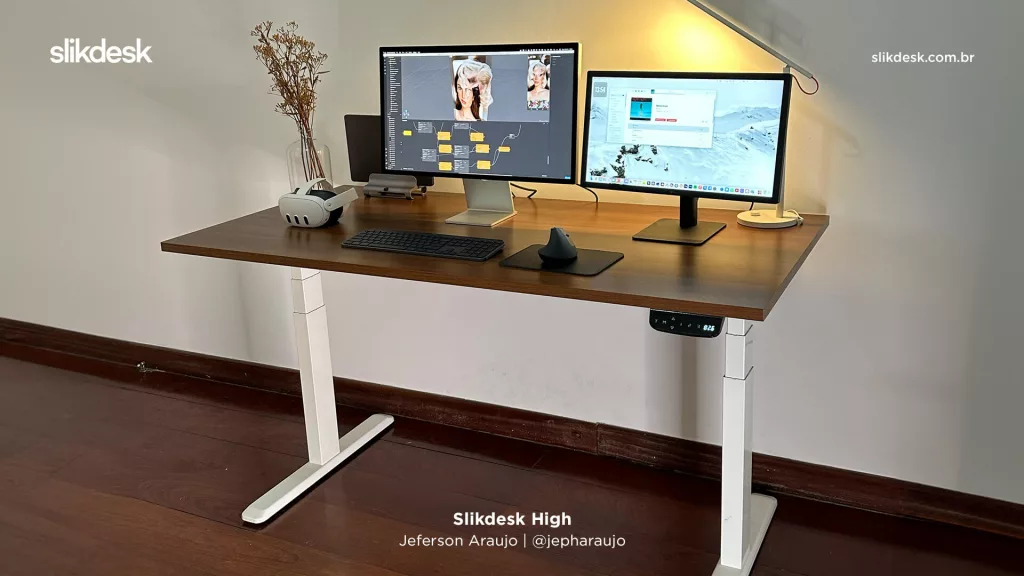 - Elegância que você escolhe: complete seu setup com tampos Slikdesk, ou de terceiros, de vários tamanhos e cores para criar um ambiente único.