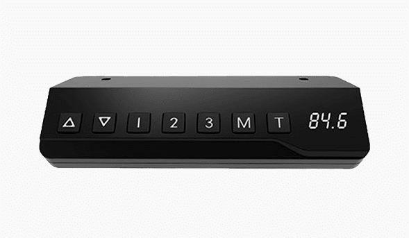 Há mesas com uma mini tela para que você possa ver, em centímetros, a altura da mesa de escritório, o que é útil se você usar a nossa calculadora ergonômica. Também é possível salvar algumas alturas preferidas.