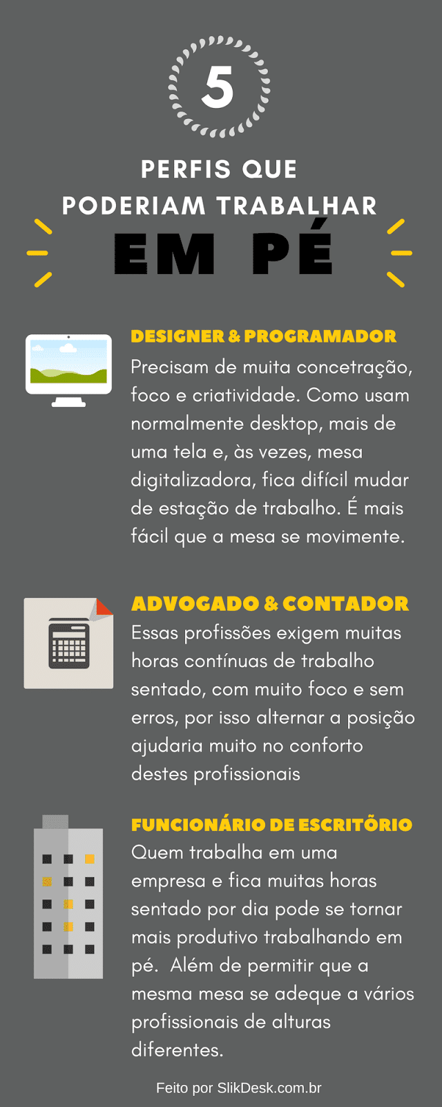 Nós da Slikdesk usamos mesas com regulagem de altura no exterior e sentimos falta quando voltamos para o Brasil.