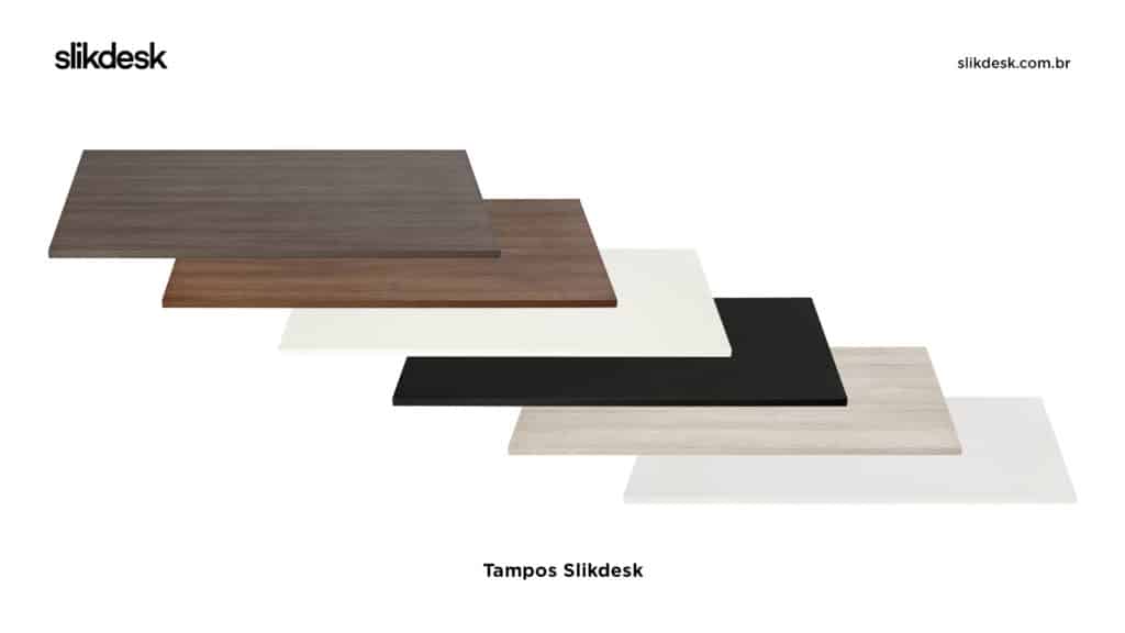 As mesas de Slikdesk se adaptam a diferentes tamanhos de tampos. Dê uma olhada no nosso comparativo de modelos