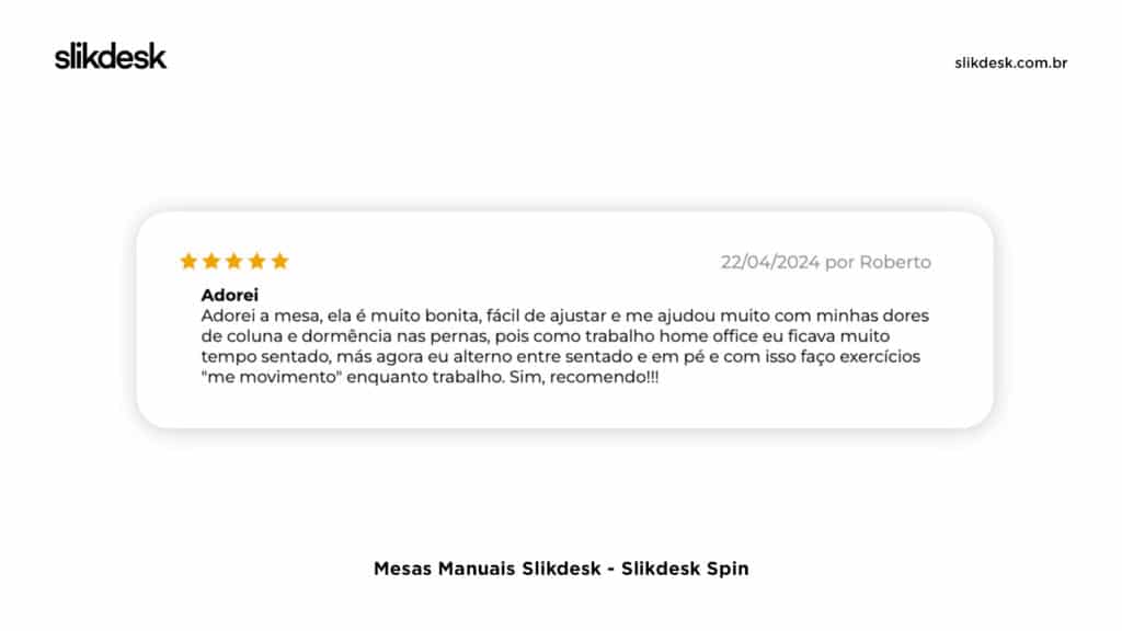 A Slikdesk tem nota máxima (5 estrelas) no Google Avaliações. São mais de 300 avaliações de nossos clientes, que evidenciam toda a qualidade e transformação que nossos produtos proporcionam.