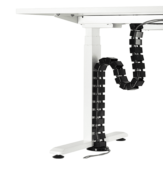 A coluna mantém os cabos fora de vista com uma aparência moderna e elegante. Perfeita para mesas com regulagem de altura, já que o movimento da coluna acompanha a movimentação da mesa, mantendo os cabos no lugar.